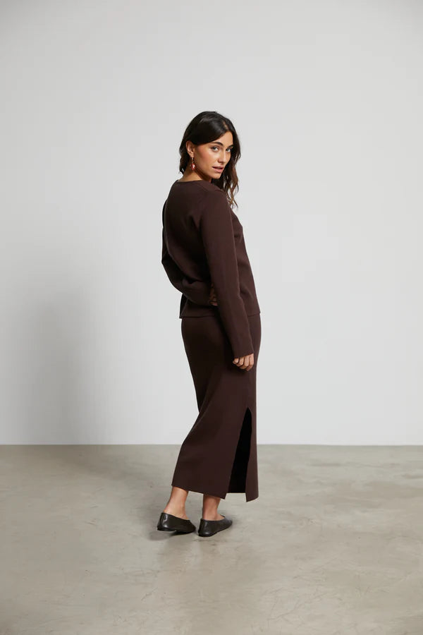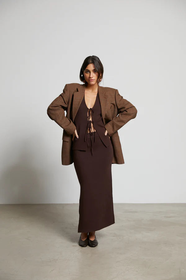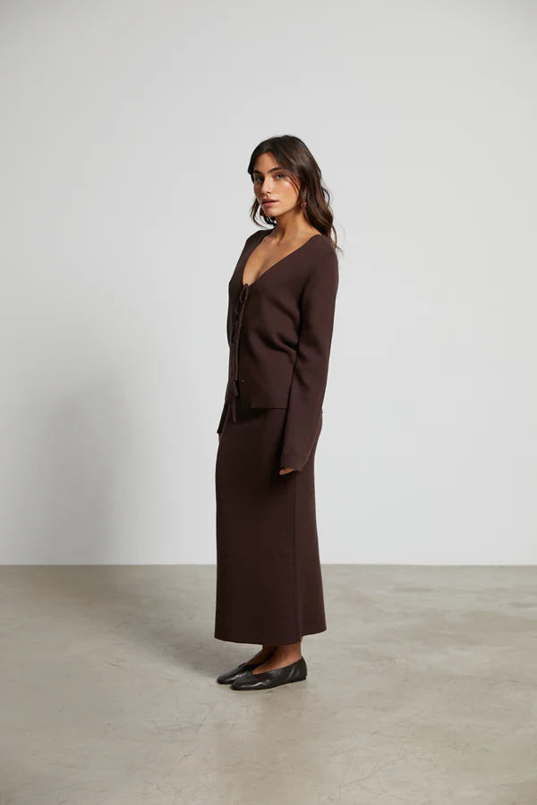 Cárdigan de punto. Cuello pico. Manga larga. Cierre frontal con lazadas.
