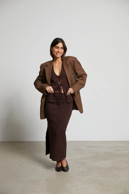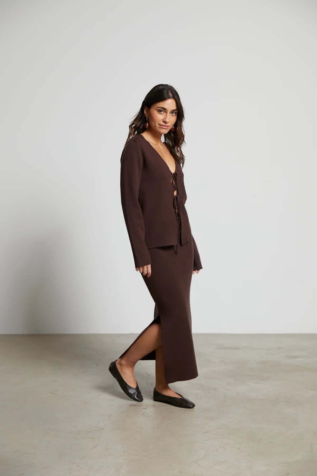 Conjunto Kali cafe ( Trench punto Kali cafe y Falda punto Elia)