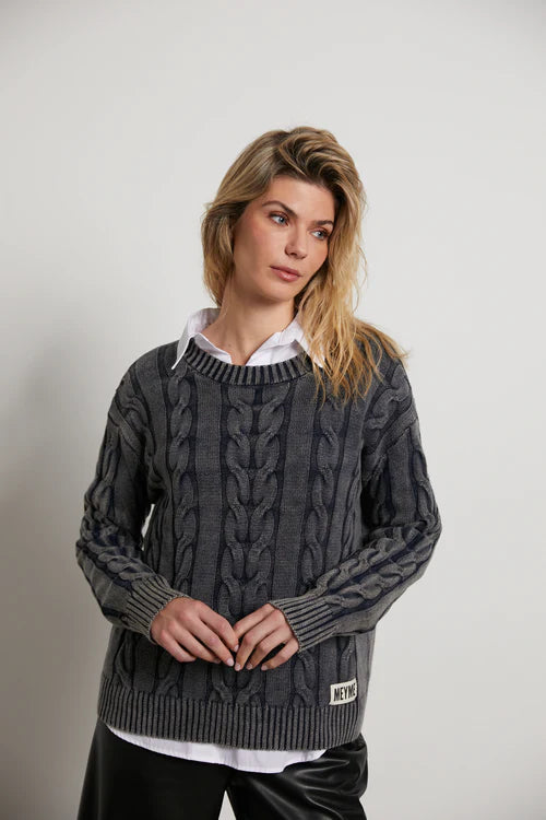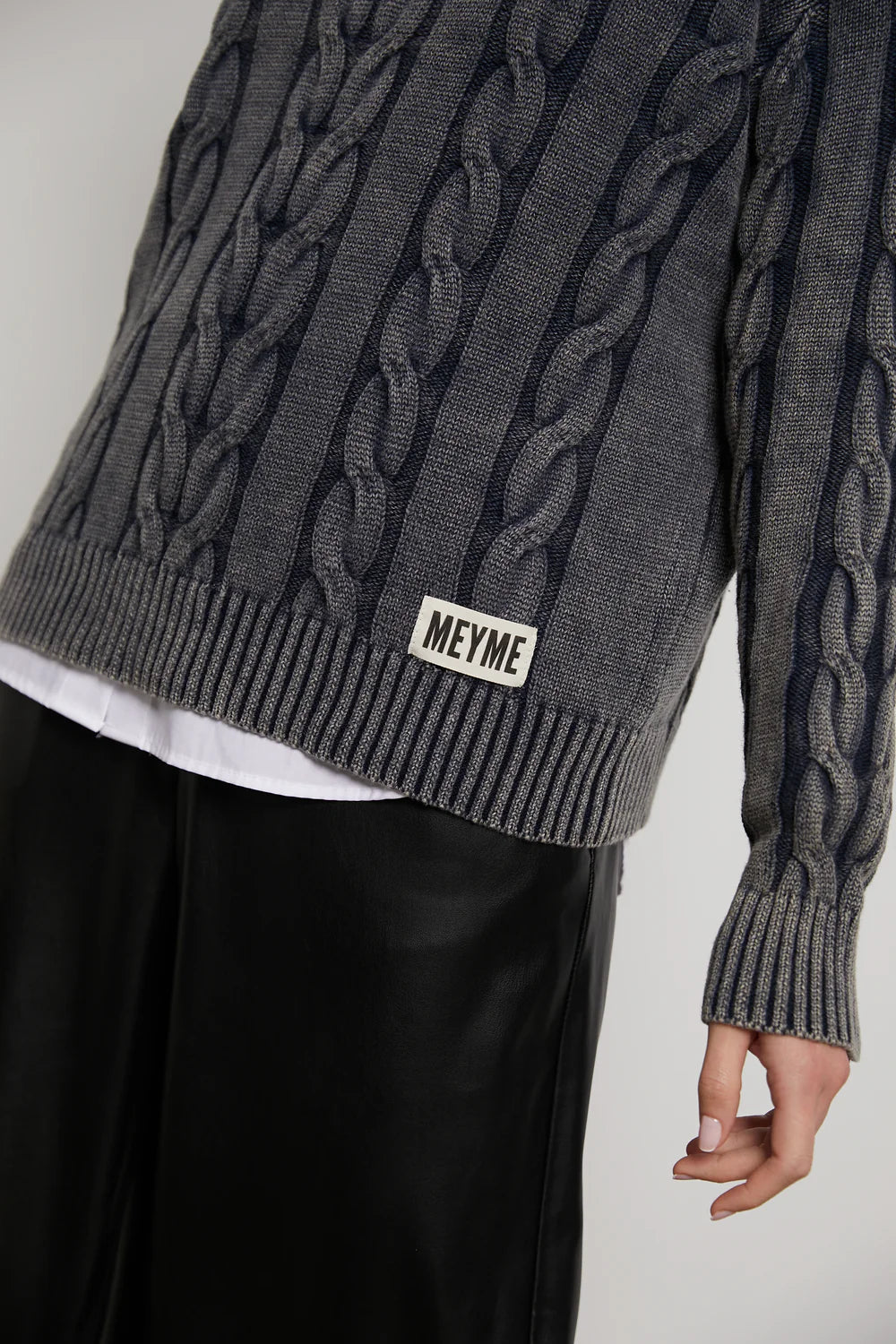 Jersey de punto trenzado. Cuello redondo. Manga larga. Acabados en rib. Detalle etiqueta cosida en lateral.