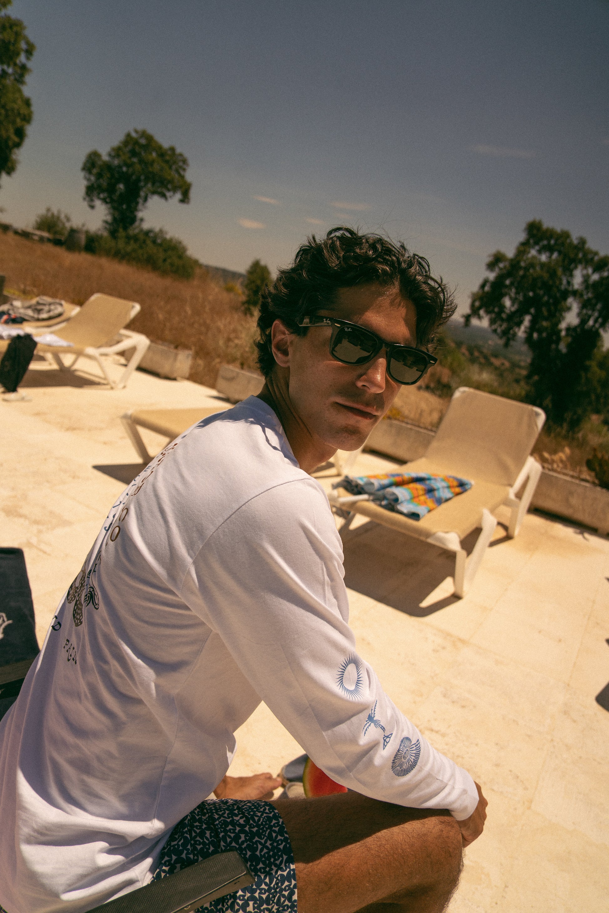Polera manga larga color blanco. Diseño en la parte trasera. Relaxed fit. 200 gm/s.