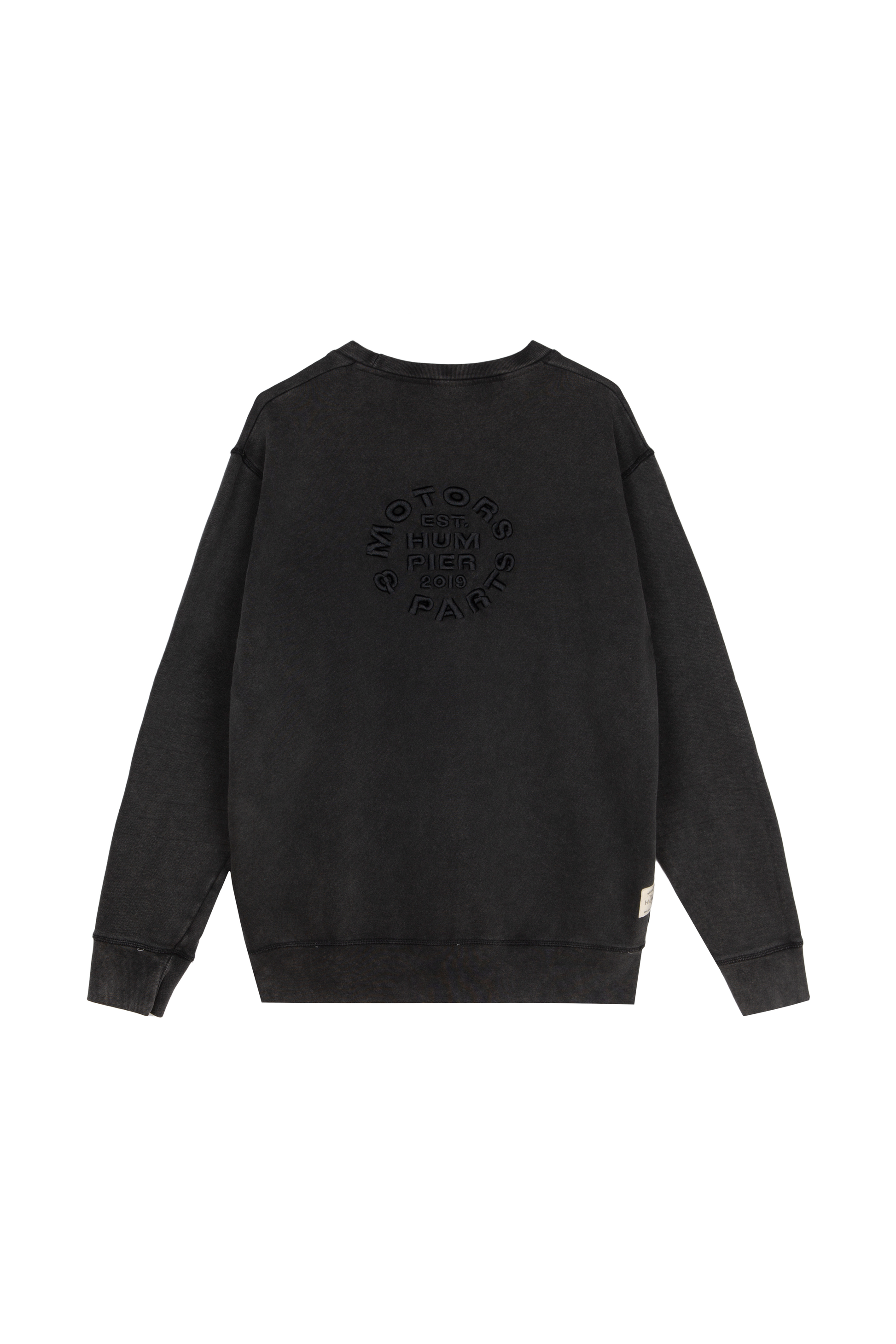 Polerón negro con cuello redondo. Relaxed fit. Detalle en parte trasera.