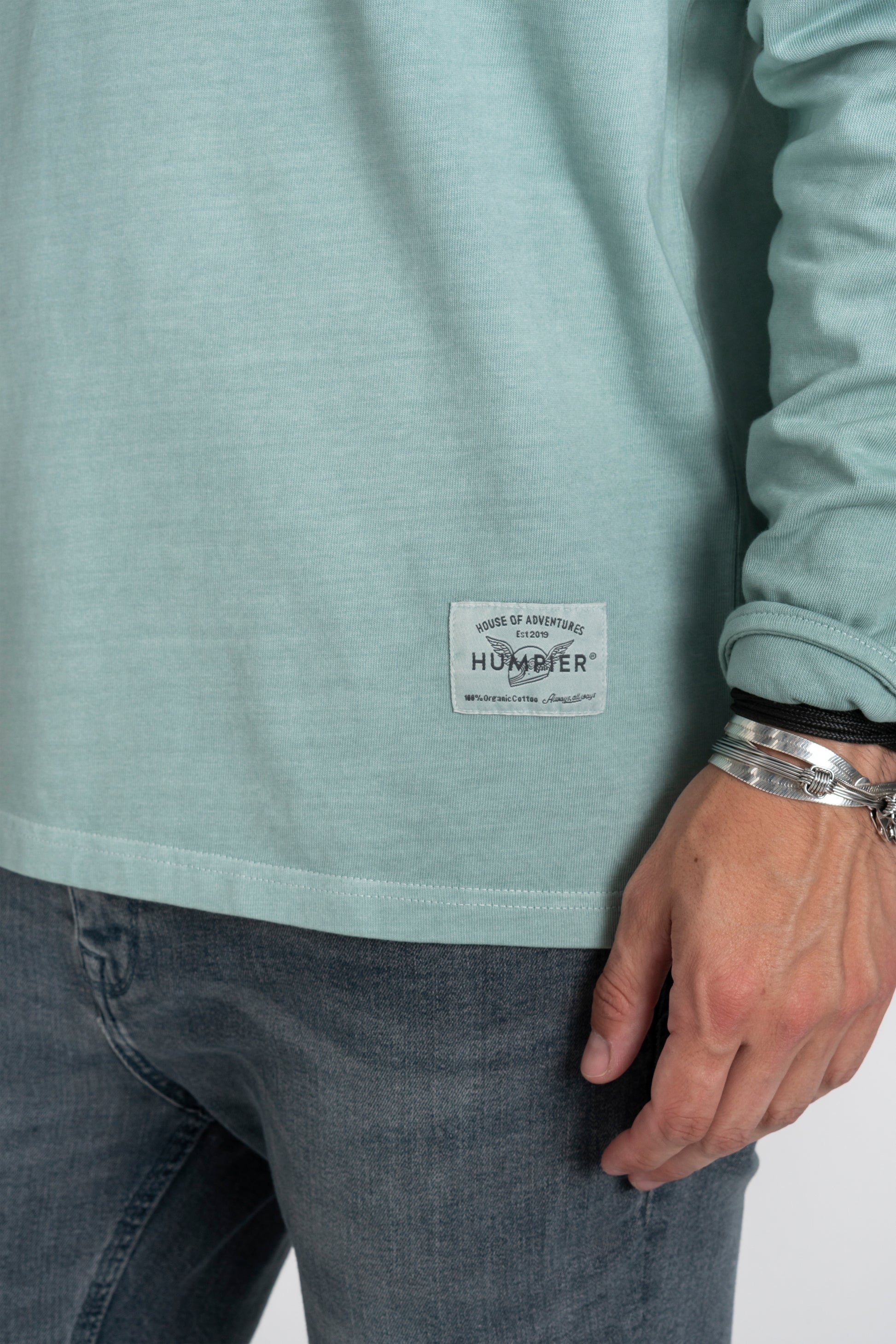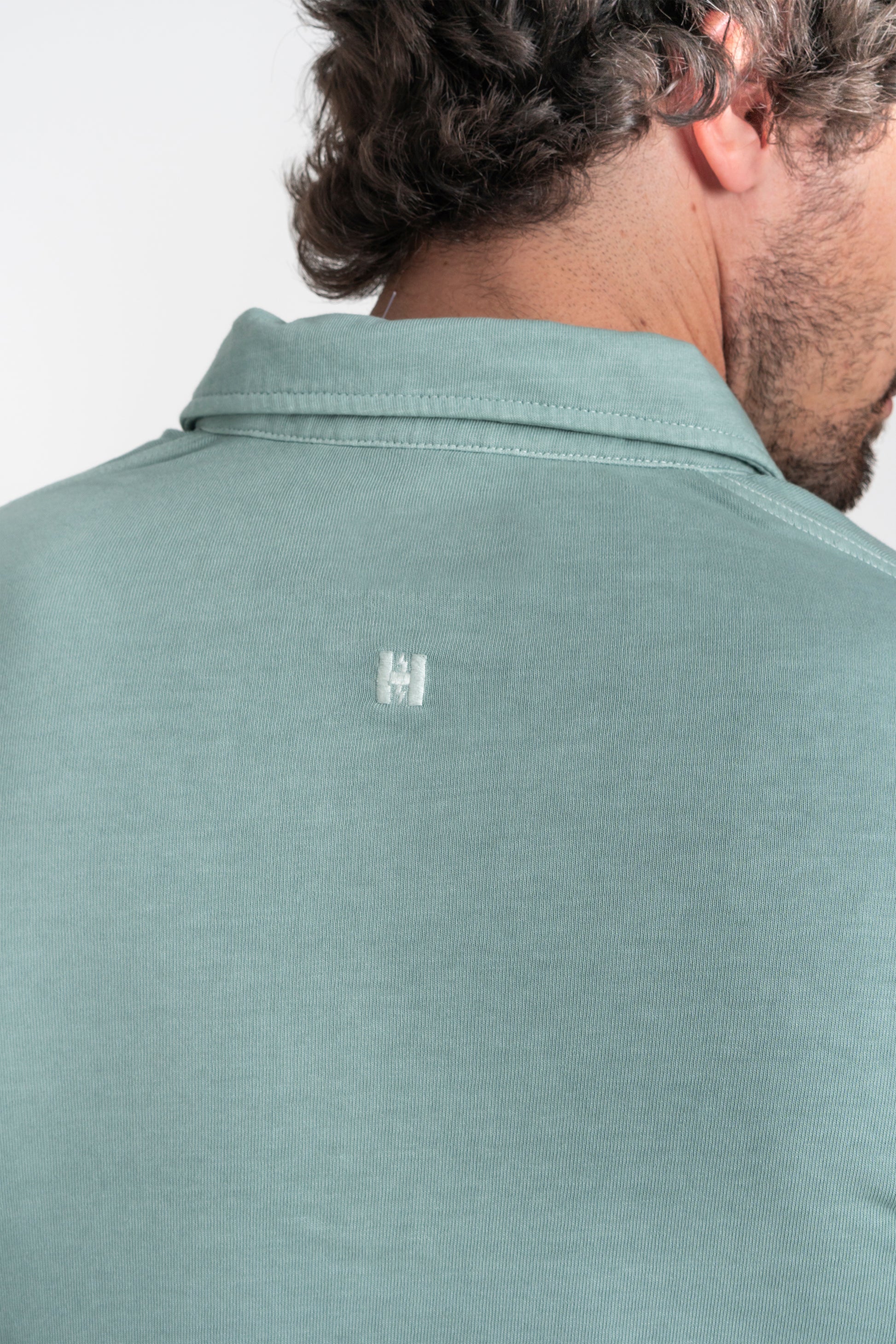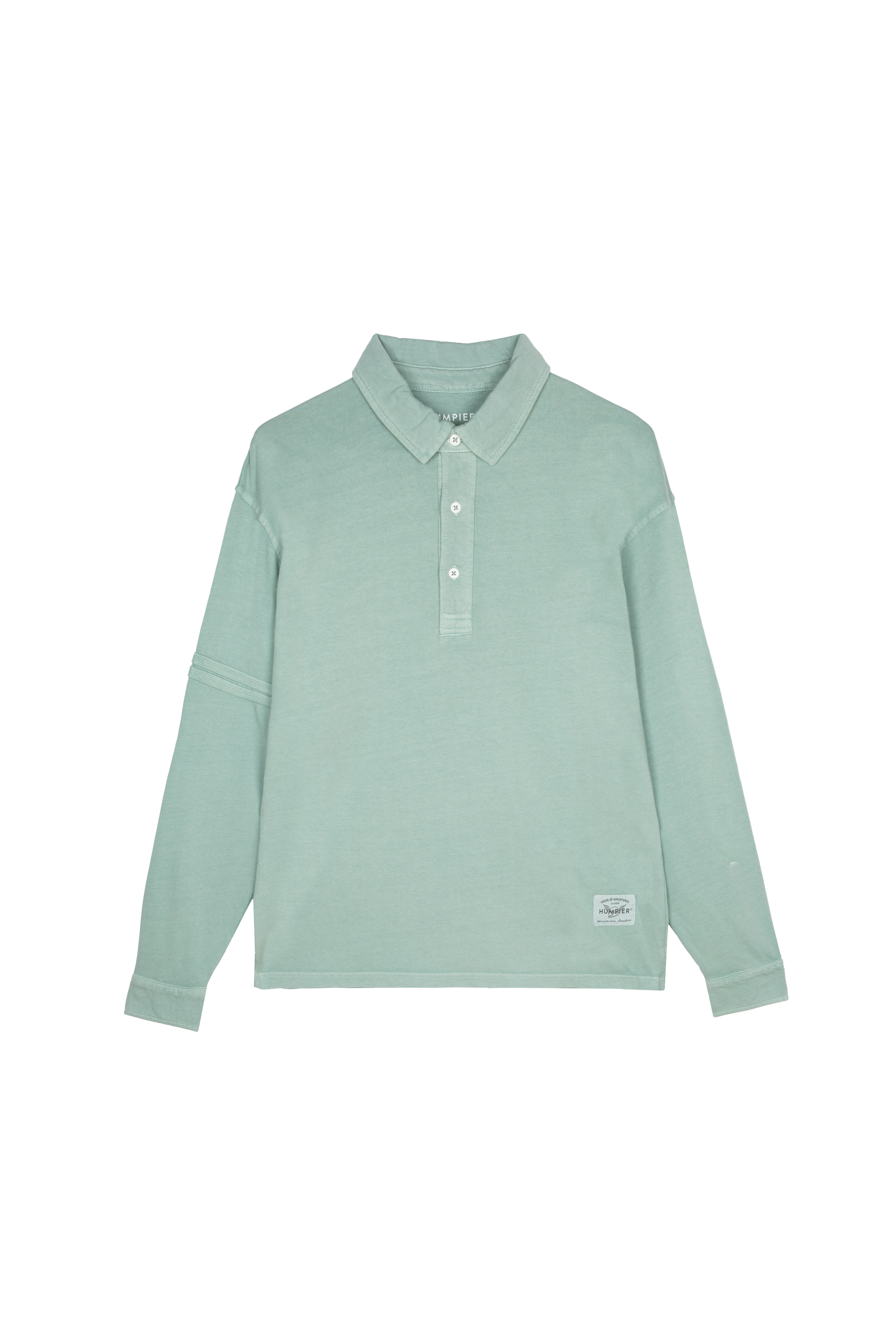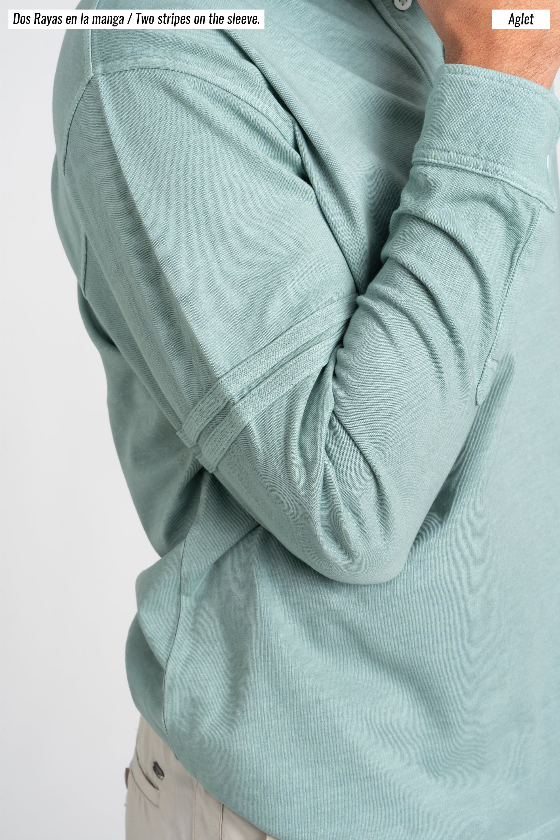Polo manga larga con cuello color verde. Relaxed Fit.