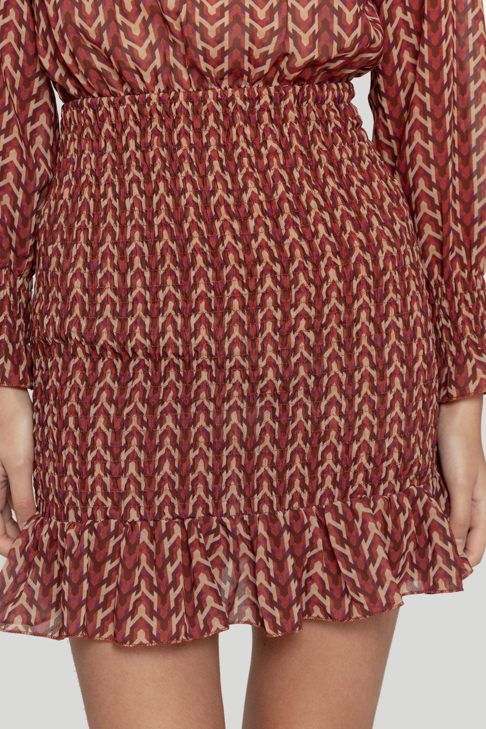 Tejido gasa. Diseño estampado. Diseño corto. Cuello redondo. Manga larga. Puño elástico. Cinturilla elástica. Abotonado en el cuello. Forrado.